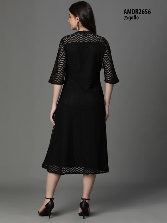 Georgette Printed Flared Dress with Lining, Peter Pan Collar